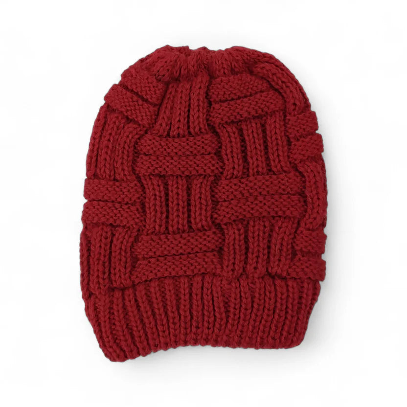 The Basket Weave Ponytail Hat is crafted from 100% alpaca fiber, offering lightweight warmth with a soft, breathable feel. Designed with a discreet opening at the back/top, it allows a ponytail or bun to pass through comfortably, making it practical for active, cool-weather wear.
