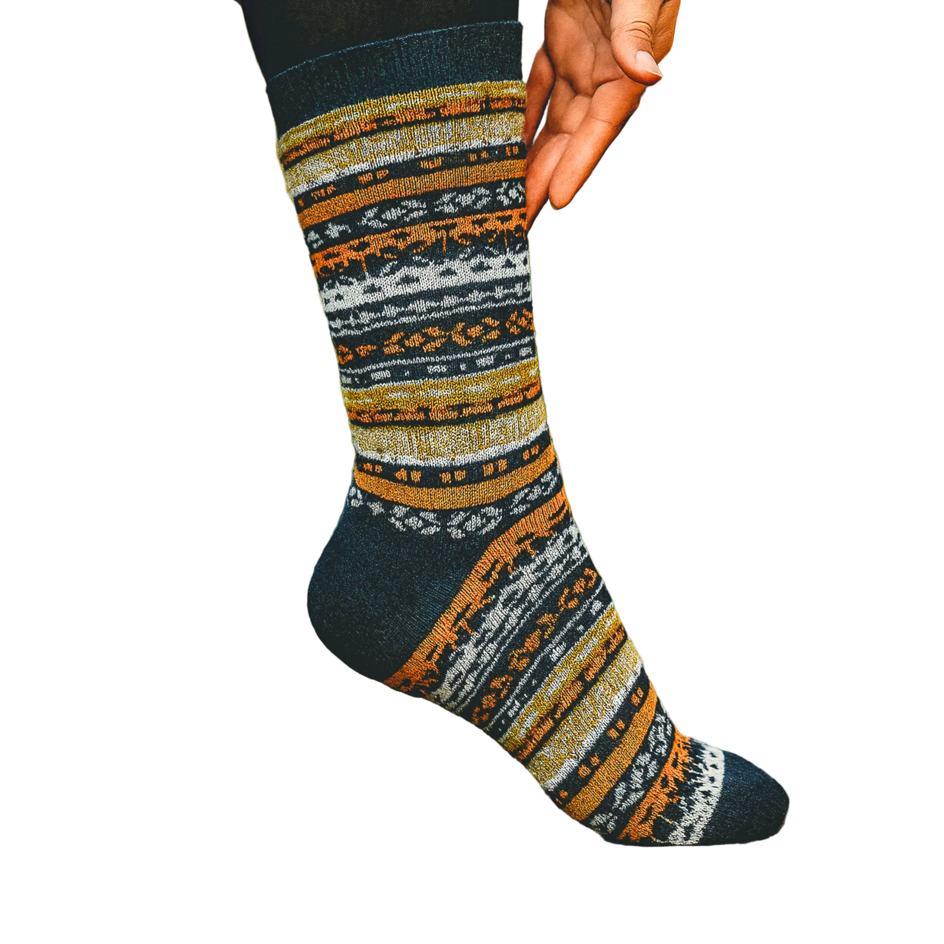 Andes Alpaca Socks feature vibrant patterns inspired by traditional Andean textile designs. Crafted in Peru, these socks combine cultural detail with everyday comfort.