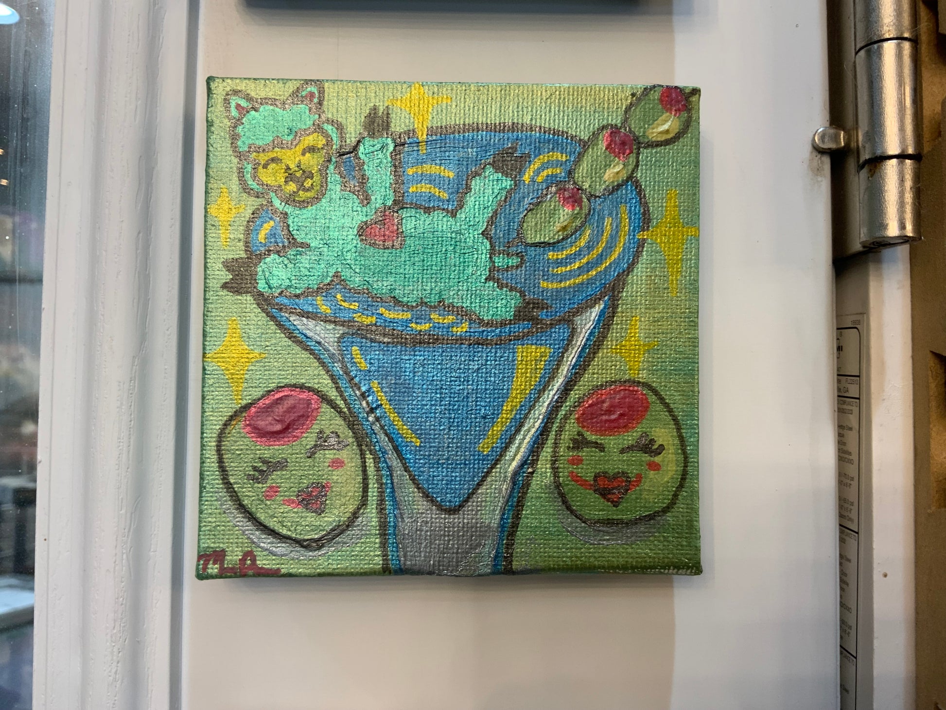 This whimsical design features a delightful green alpaca enjoying a swim in a virgin martini—complete with extra olives! Lightweight, magnetic, and ready to display, it’s the perfect playful accent for kitchens, bars, offices, and anywhere you want to spark a smile.
