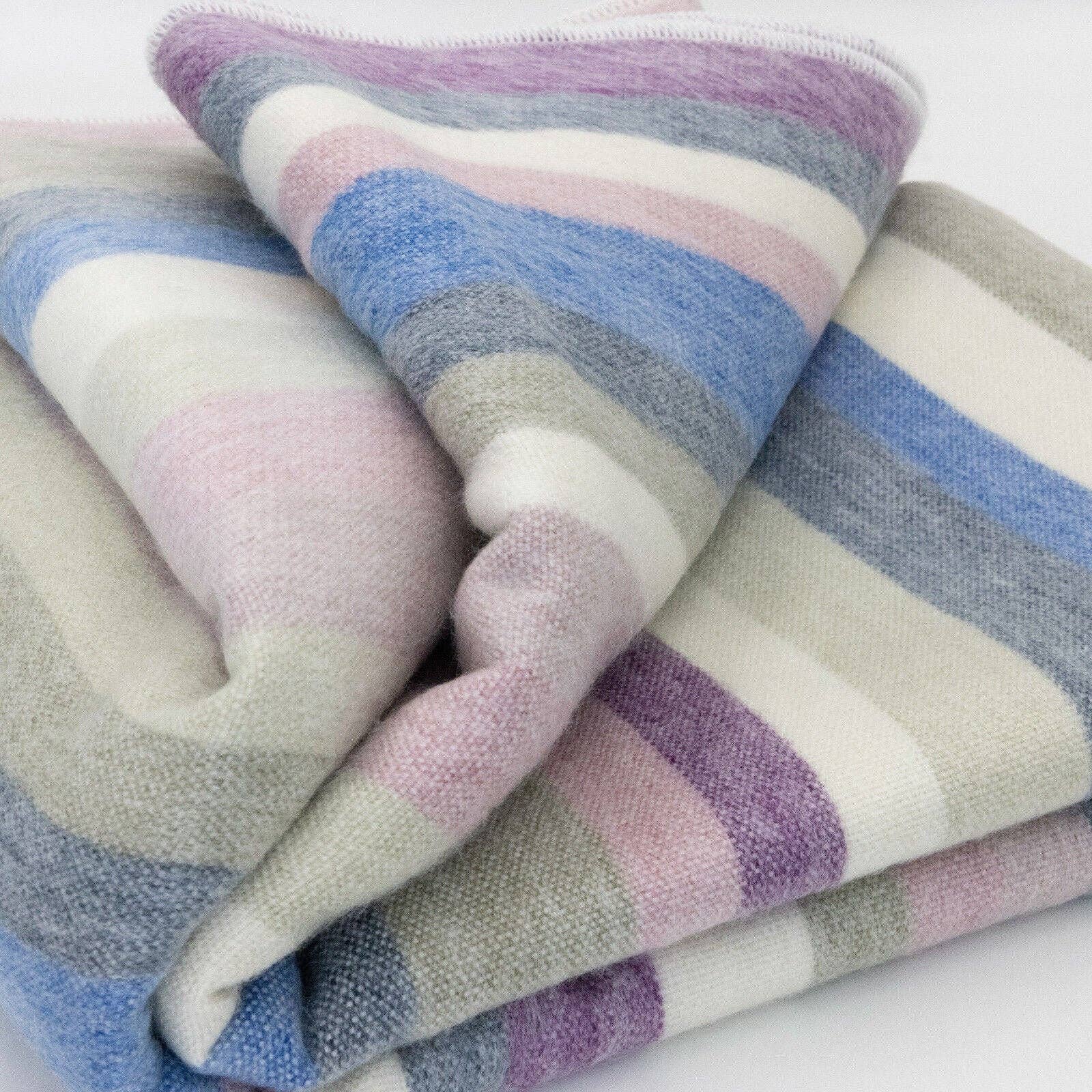 Yunga - Queen-Sized Baby Alpaca Wool Throw Blanket/Sofa Cover - 95 x 65 in - Pastel Dreams - Soft Pink/Blue/Purple Hues